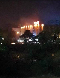 .المصدر ان الدخان الاسود غطى المدينة لمدة ساعات